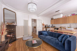 Entièrement refait à neuf il y a 2 ans par un architecte, il comprend : entrée avec rangements, double living avec cuisine ouverte aménagée et équipée, grande chambre au calme sur cour et bénéficiant d'un vrai dressing, salle d'eau, WC séparé. Charme de l'ancien (parquet, moulures, cheminées). Le bien est complété par 2 caves.